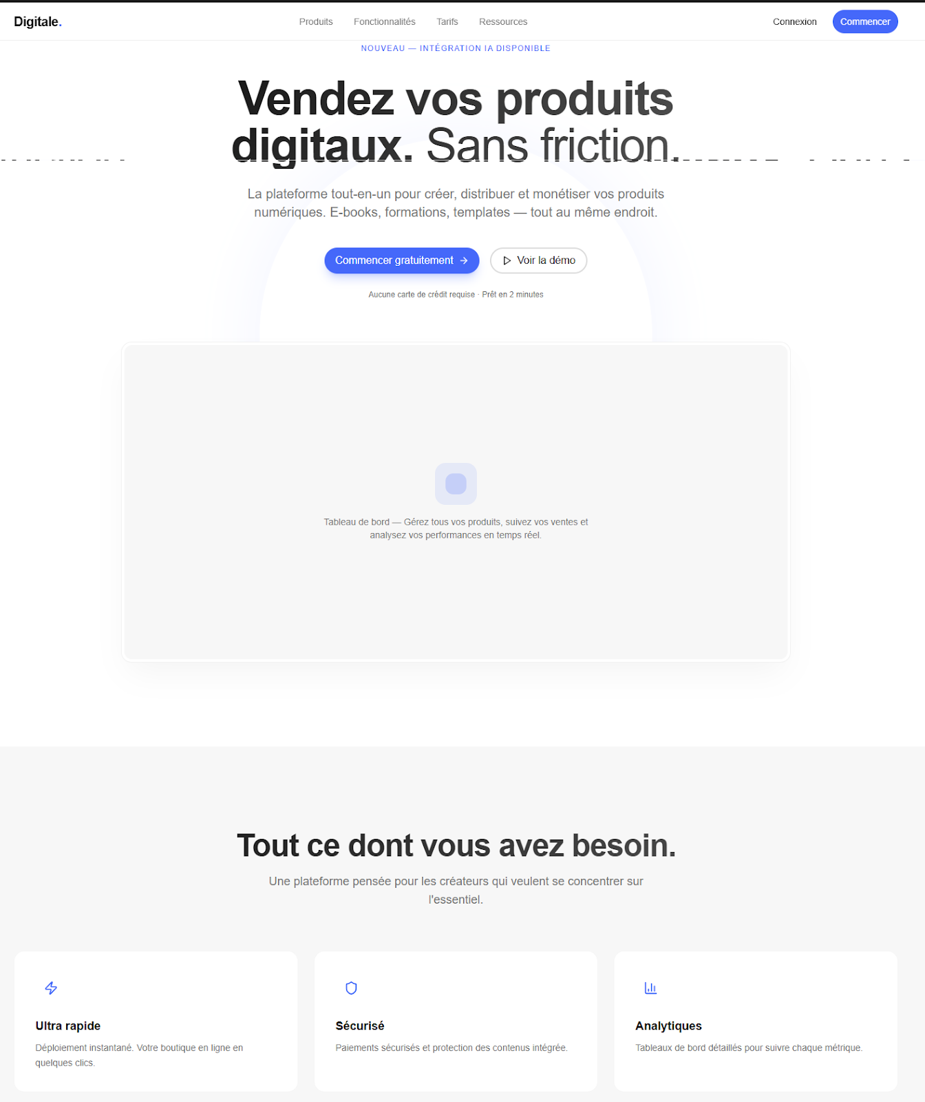 Avec un seul prompt : “crée moi un site internet dans le style d'apple pour un saas qui vends des produits digitaux”