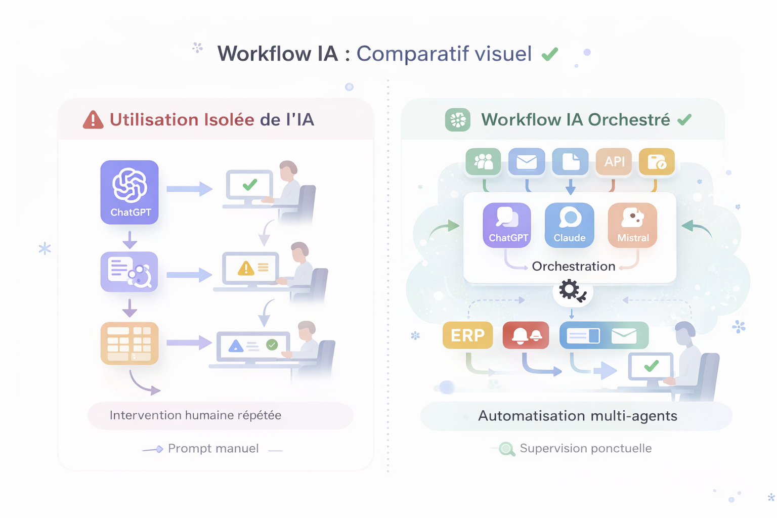 Après avoir défini le workflow IA et clarifié la différence avec scripts, automatisations et agents, la question devient simple : pourquoi le formaliser au niveau entreprise ?